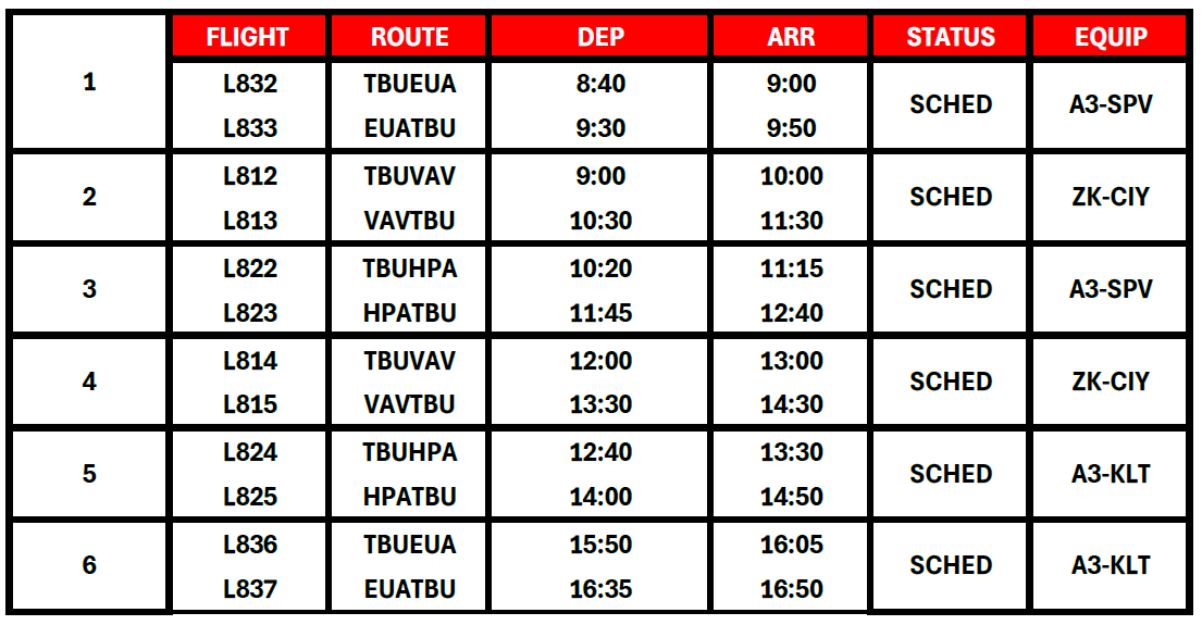 The nation's capital is Nuku'alofa, situated on the main island of Tongatapu. International flights arrive and depart from Fua'amotu International Airport on Tongatapu. Lulutai Airlines provides domestic flight services from Tongatapu to airports in the outer island groups of Vava'u, Ha'apai, 'Eua, Niuafo'ou and Niuatoputapu.