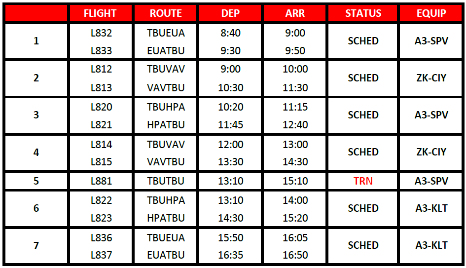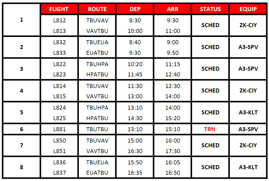 Proudly providing domestic air services for the Kingdom of Tonga