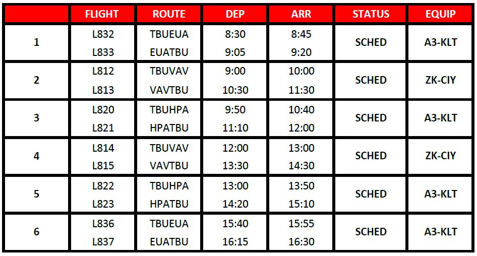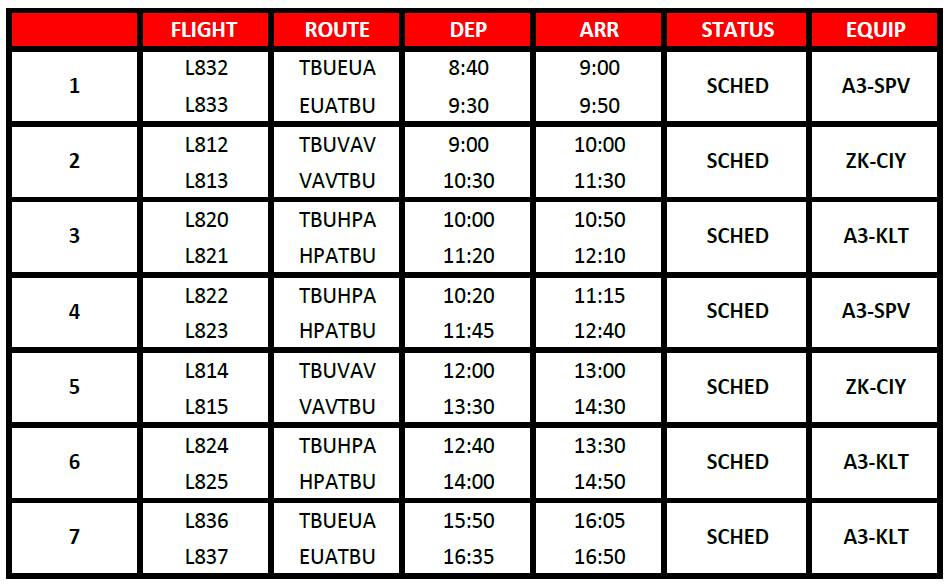 Proudly providing domestic air services for the Kingdom of Tonga