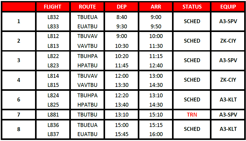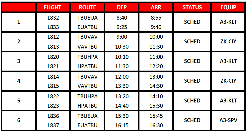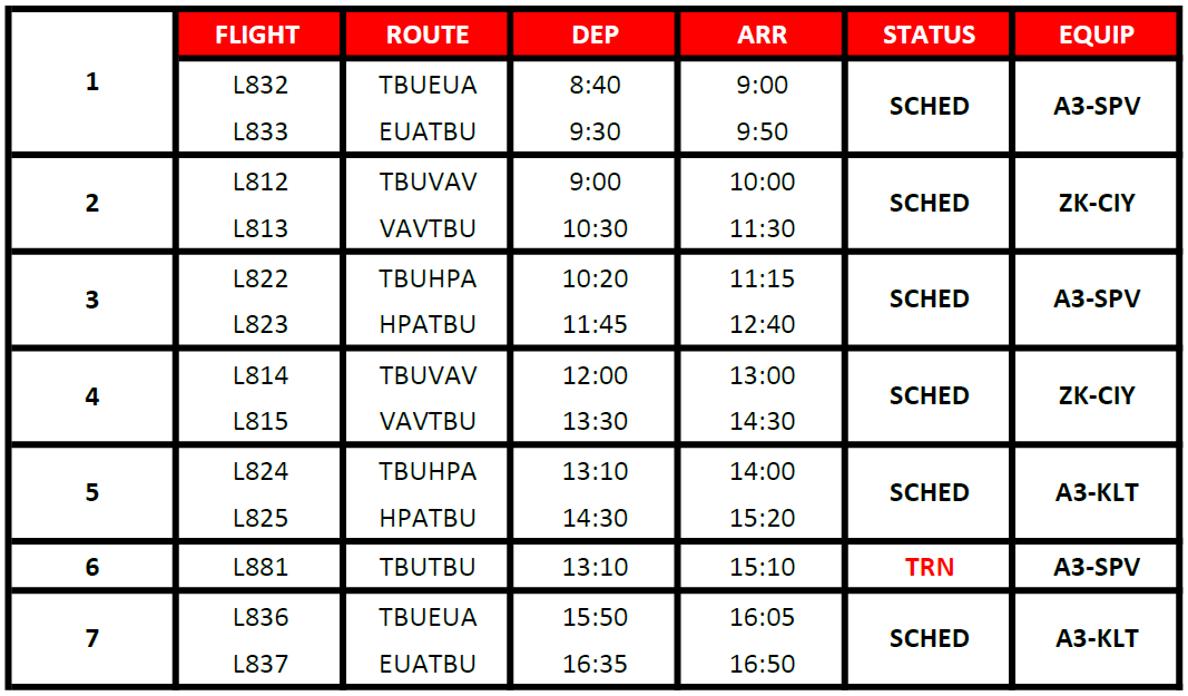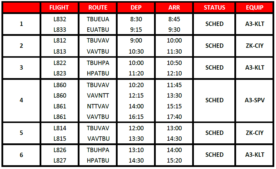 The nation's capital is Nuku'alofa, situated on the main island of Tongatapu. International flights arrive and depart from Fua'amotu International Airport on Tongatapu. Lulutai Airlines provides domestic flight services from Tongatapu to airports in the outer island groups of Vava'u, Ha'apai, 'Eua, Niuafo'ou and Niuatoputapu.